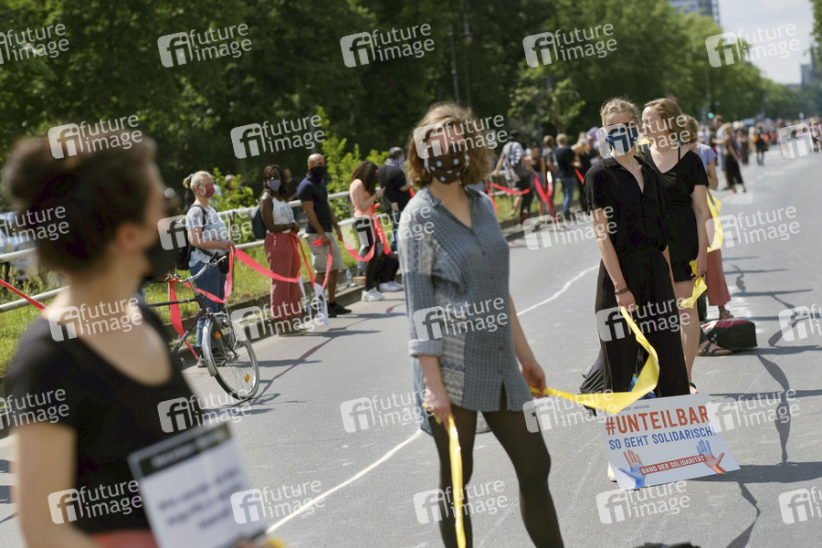 Demonstration vom Bündnis 'Unteilbar' mit einer Menschenkette gegen Rassismus und soziale Ungerechtigkeit vom Brandenburger Tor in Berlin-Mitte bis zum Hermannplatz in Berlin-Neukölln unter dem Motto 'SoGehtSolidarisch'. Berlin, 14.06.2020