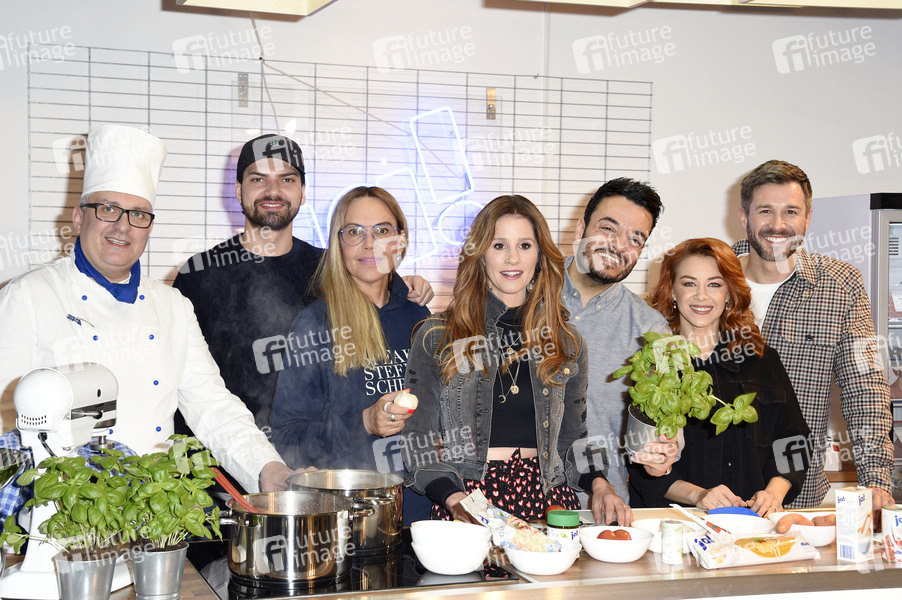 Koch, Jimi Blue Ochsenknecht, Natascha Ochsenknecht, Mareile Höppner, Giovanni Zarrella, Oana Nechiti und Jochen Schropp beim VIP Media Launch der Rewe Aktion 'Die 5 Lieblingsgerichte Deutschlands' im Rewe Pop-Up Store. Berlin, 20.03.2019