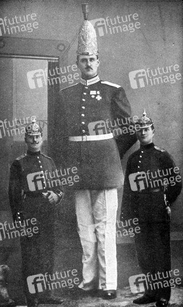 Seiner Majestät größter Soldat 'Der lange Josef' mit zwei zur gleichen Zeit gedienten Kameraden. Berlin, 15.06.1913