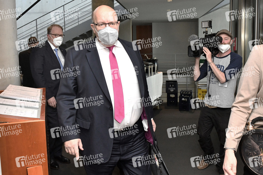Peter Altmaier bei der Ankunft zu seiner Vernehmung als Zeuge in der 41. Sitzung des 3. Untersuchungsausschusses 'Wirecard' im Paul-Löbe-Haus. Berlin, 20.04.2021