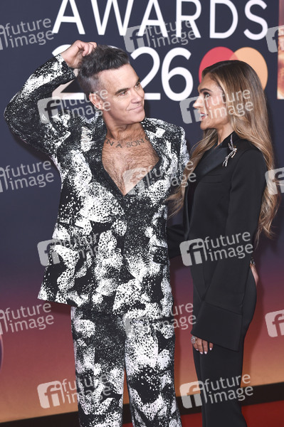 Robbie Williams mit Ehefrau Ayda Field bei der Verleihung der 46. BRIT Awards 2026 in der Co-op-Arena. Manchester, 28.02.2026