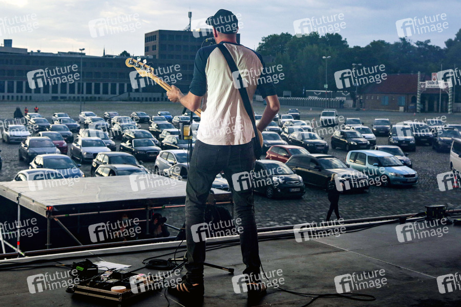 Musiker, Sänger, Bassist, Band, Punk Rock, Musik, Konzert, Auftritt, Bühne, Stage, live, Unterhaltung, Entertainment, Kultur, Open Air, Autokonzertreihe, Autokonzert, Auto-Konzert, Autokino-Konzert, Open Air