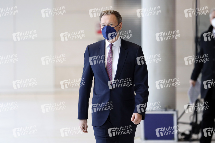 Christian Lindner bei einem Pressestatement der FDP vor der Fraktionssitzung auf der Fraktionsebene im Reichstagsgebäude. Berlin, 23.03.2021
