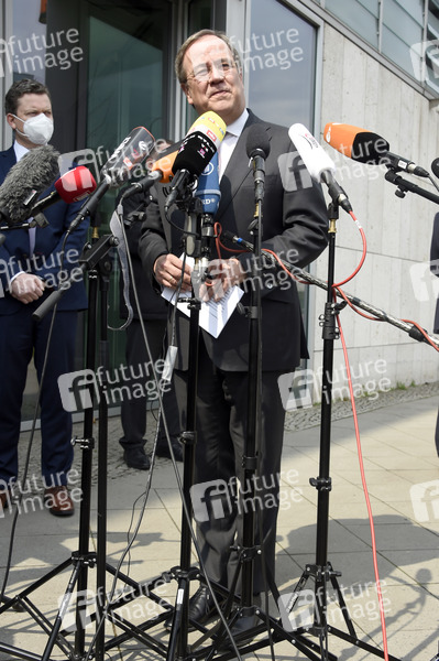 Armin Laschet bei einem Pressestatement zur Kanzlerkandidatur von Annalena Baerbock vor dem Konrad-Adenauer-Haus. Berlin, 19.04.2021