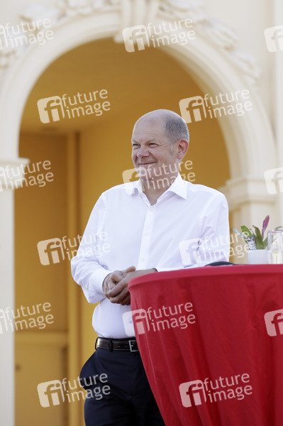 Olaf Scholz bei einem öffentlichen Bürgergespräch vor dem Brandenburger Tor. Potsdam, 30.07.2021