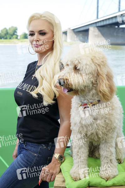 Daniela Katzenberger bei der Eröffnung einer schwimmenden Hundewiese auf einem 1.000 qm großem Ponton mit Rollrasen, Hundeparcours und Pop-Up-Store auf dem Rhein. Düsseldorf, 07.06.2019