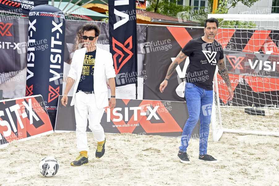 Conny Dachs und Aurelio Savina beim Sexy Soccer 2021 Nacktfußballspiel Deutschland gegen England am Charlies Beach. Berlin, 24.06.2021