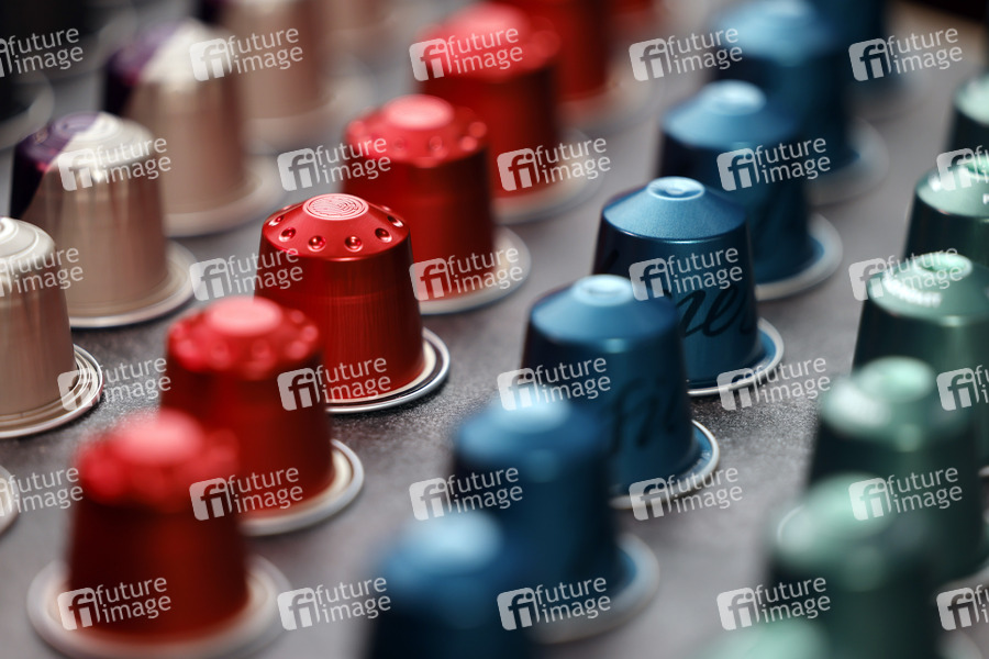 Kaffeekapseln verschiedener Hersteller auf einem Tisch. Die Organisation Foodwatch kritisiert Kaffeekapseln immer wieder als 'riesige Ressourcenverschwendung'. Zuletzt ließ man die Werbelüge eines Herstellers abmahnen, dessen Kaffeekapseln seien kompostierbar. (Themenbild, Symbolbild) 25.01.2022