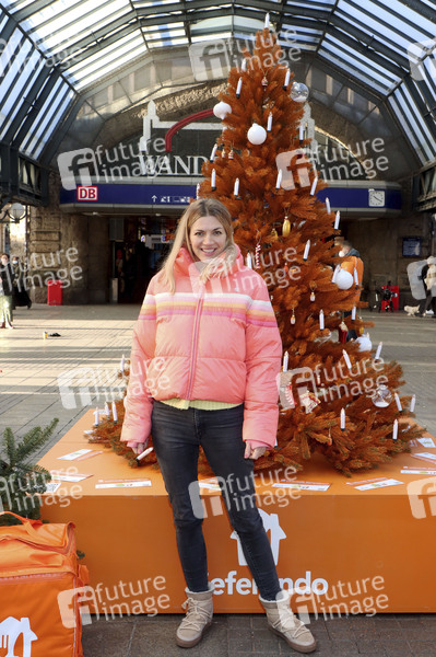 Nina Bott eröffnet den Lieferando Wunschbaum im Rahmen einer Spendenaktion für Kinder der Arche vor dem Hauptbahnhof. Hamburg, 02.12.2021