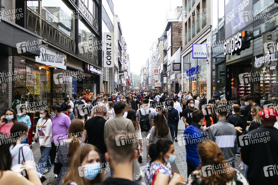 Inzidenz, 7-Tage-Inzidenz, Inzidenzwert, Inzidenzzahlen, Köln, Einkaufen, Shopping, Click and Meet, Geschäfte, Öffnungen, Menschenmenge, Tröpfcheninfektion, Aerosole, Ausgangssperre, Lockerungen, Ausgangsbeschränkungen, Gastronomie, Bars, Kneipen, Öffnen, Notbremse, Corona, Coronakrise, Corona-Maßnahmen, Coronaschutzverordnung, Land NRW, Stadt Köln, Maskenpflicht, Masken, Maske tragen, Mindestabstand, Mund-Nasen-Bedeckung, Mund-Nasen-Schutz, MNS, FFP2, Corona, Virus, Coronavirus, Coronaviren, Corona-Politik, Coronamaßnahmen, Corona-Regeln, Coronaregeln, dritte Welle, zweite Welle, dritte Welle, Kontaktbeschränkungen, Inzidenzwerte, Gesundheit, Hygiene, Neuinfektionen, R-Wert, Inzidenzzahl, Maskenzwang, Infektionsschutzgesetz, Infektionsschutz, Alkoholverbot, Verweilverbot, Verweilverbote, Gesundheitspolitik, Domstadt, Corona-Auflagen, Lockdown, Lock Down, Sommer, ansteigende Temperaturen, Corona-Lockerungen, Tourismus, draußen, Stadtleben, Wirtschaft, Konjunktur, Umsatz, Einzelhandel, Geschäfte, Corona-Auflagen, Testpflicht, Symbolbild, Symbolfoto