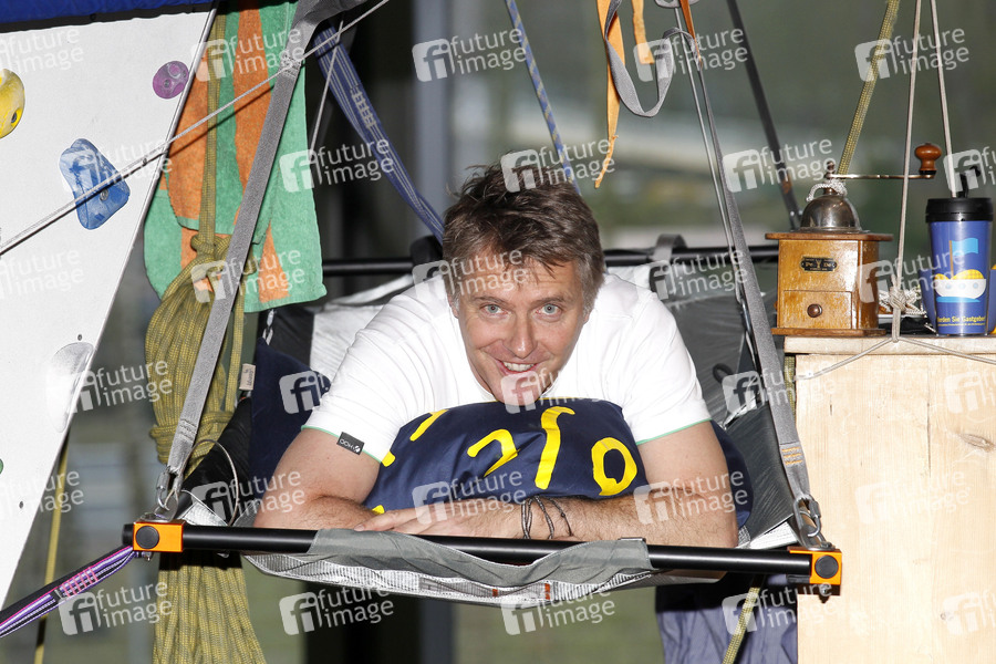 Jörg Pilawa wirbt für 'Koje frei' im Klettergarten der Nordwandhalle, Hamburg