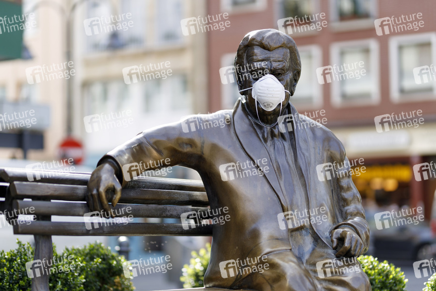 Willy-Millowitsch-Denkmal mit Mundschutz am Willy-Millowitsch-Platz. Köln, 19.03.2020