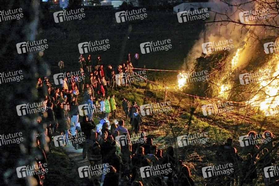 Ostern, Tradition, Feuer, Lagerfeuer, Weserbergland, Brauch, Feuerweihe, Ostersonntag, Osterbrauch, Holzstoß, Feuerwehr, Rauchentwicklung, Rauch, Qualm, Symbolbild, Themembild