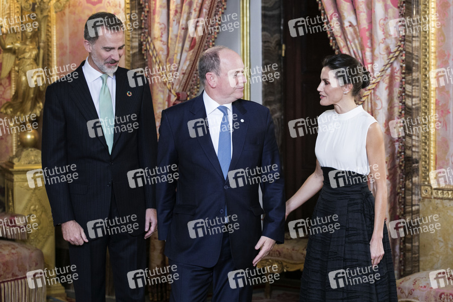 König Felipe von Spanien, Fürst Albert II. von Monaco und Königin Letizia von Spanien bei einem Empfang anlässlich der UN-Klimakonferenz 2019 im Palacio Real. Madrid, 02.12.2019