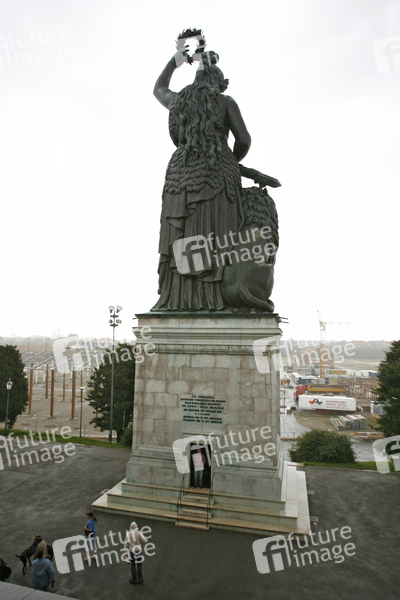 weibliche Symbolgestalt und weltliche Patronin Bayerns, im Auftrag von König Ludwig I. in den Jahren 1843-1850 errichtet, Entwürfe von Leo von Klenze, 18.52 Meter hoch, Bronzehohlguss, Höhe des Steinsockels 8.92 Meter, Bildhauer Ludwig Schwanthaler