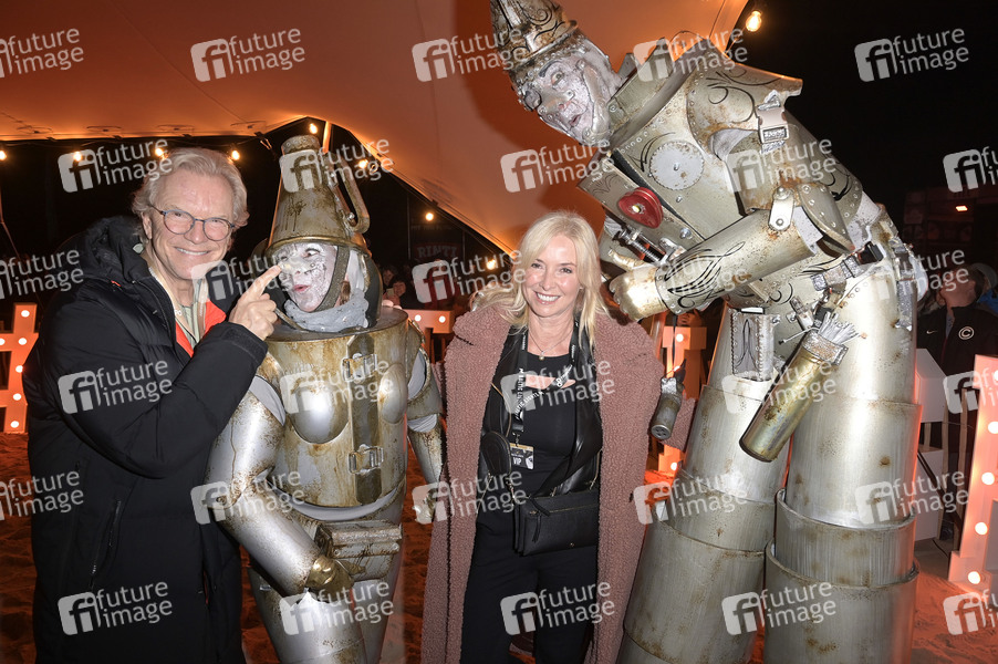 Wolfgang Lippert mit Ehefrau Gesine Lippert, Claudia Jungesbluth und Enrico Lein beim offiziellen Opening der Baltic Lights 2024 mit Fackellauf und Lagerfeuer an der Alex Strandbar. Heringsdorf, 01.03.2024