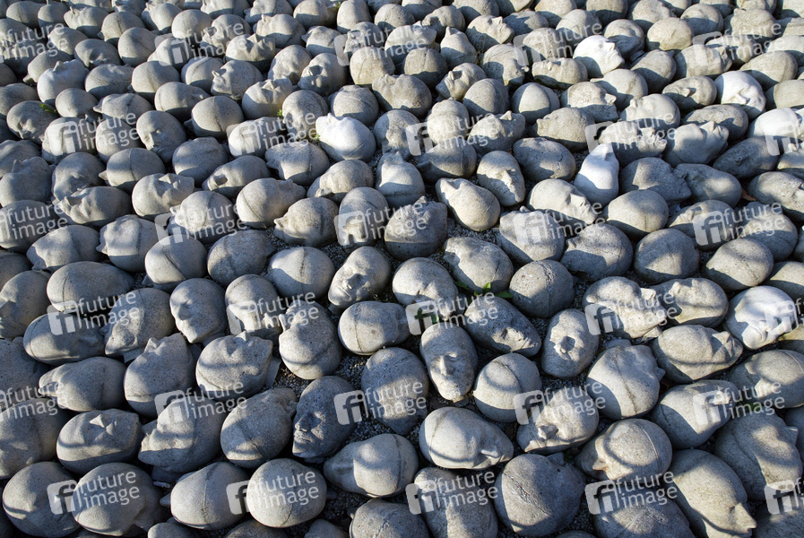 Kunstwerk nach dem Kopf des Künstlers 1980-1994, Feld mit weißen Köpfen aus Stein