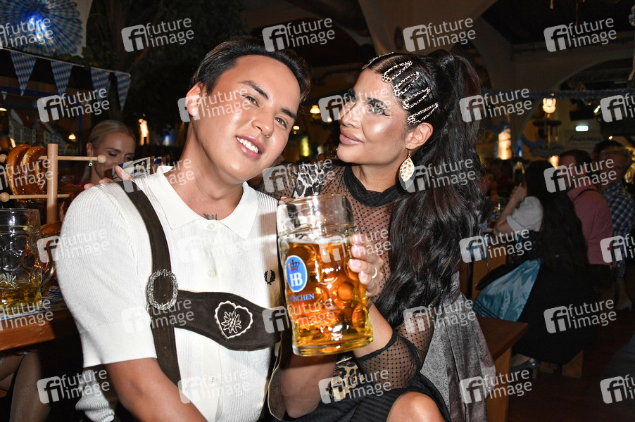 Jeldos Stecker und Micaela Schäfer beim Wiesn-Anstich zum Oktoberfest 2024 im Hofbräu Berlin. Berlin, 21.09.2024