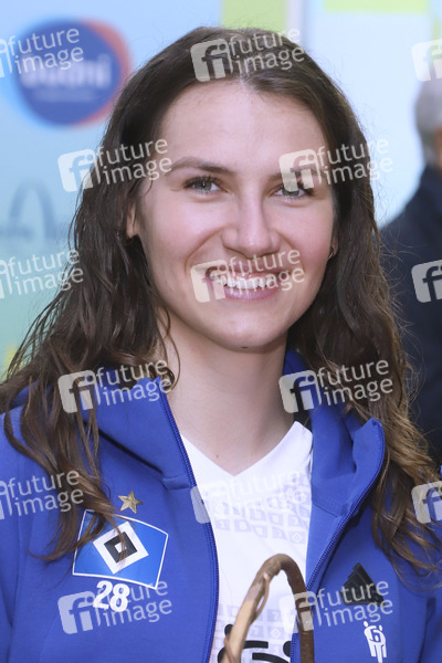 Prominenz, Celebrity, Celebrities, Osterhasen, Goldhasen, Lindt, Europa Passage, Charity-Aktion, Spenden, Ostern, Schokalade, Spendenaktion, Entertainment, Sportlerin, Fußballspielerin