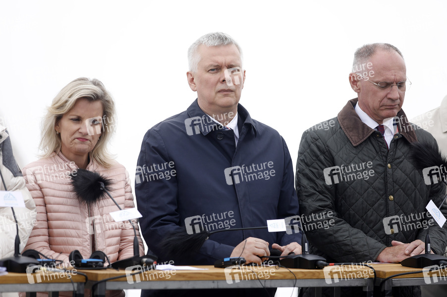Daniela Ludwig, Tomasz Siemoniak und Gerhard Karner bei der Pressekonferenz nach dem europäischen Ministertreffen zur Migrationspolitik auf der Zugspitze. Garmisch-Partenkirchen, 18.07.2025