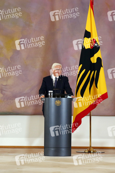 Frank-Walter Steinmeier bei der Verleihung des Verdienstkreuzes 1. Klasse an Brigadegeneral Jens Arlt im Schloss Bellevue. Berlin, 17.09.2021