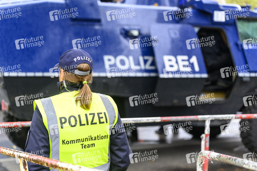 Räumung des linksautonomen Wagenplatzes 'Köpi'. Die Bewohner hatten im Vorfeld angekündigt, sie wollen nicht kampflos aufgeben. Rund eine Stunde haben die Barrikaden des linksautonomen Wagencamps gehalten, dann durchbrach die Polizei den Zaun an mehreren Stellen. Es gab Festnahmen. Berlin, 15.10.2021