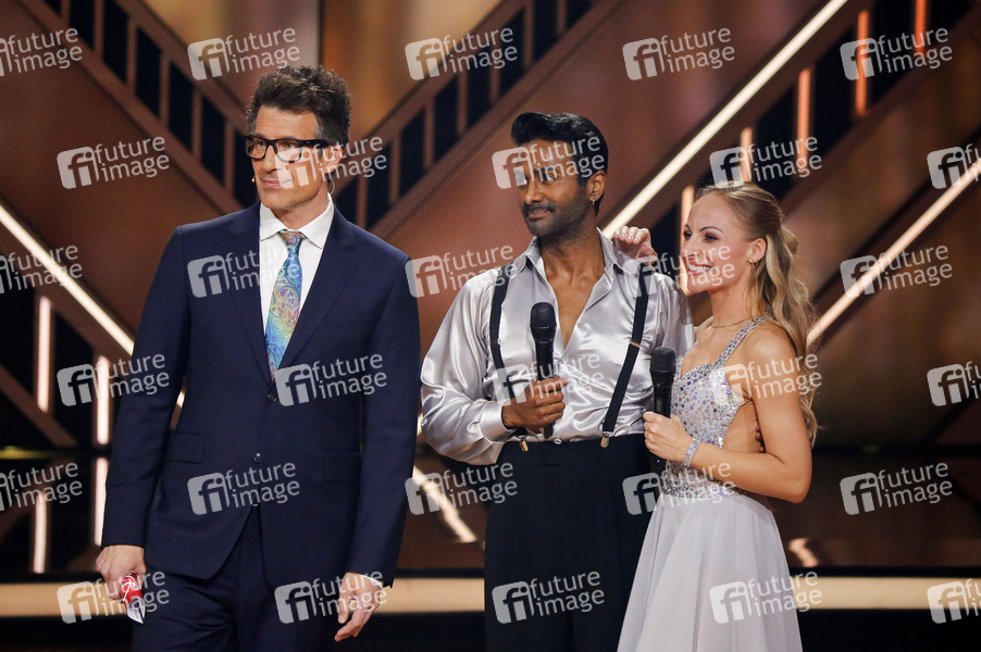Daniel Hartwich, Biyon Kattilathu und Marta Arndt in der siebten Live-Show der 17. Staffel der RTL-Tanzshow 'Let's Dance' im MMC Coloneum. Köln, 19.04.2024
