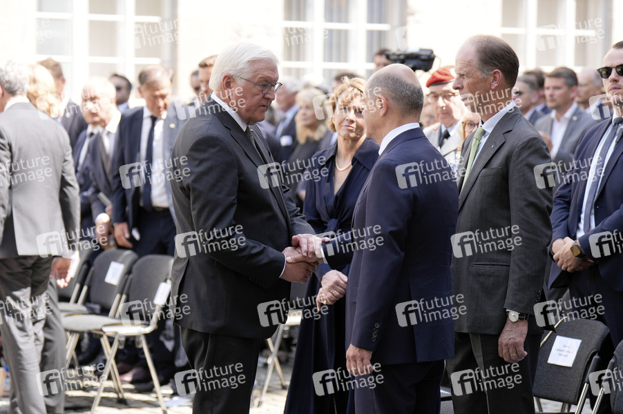 Frank-Walter Steinmeier und Olaf Scholz bei der Gedenkveranstaltung zum 80. Jahrestag des Aufstands gegen Nationalsozialistische Gewaltherrschaft mit Kranzniederlegung auf dem Ehrenhof des Bendlerblocks.Berlin, 20.07.2024