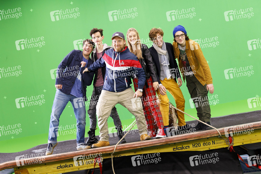 Oskar Keymer, Eloi Christ, Axel Stein, Lina Hüesker, Georg Sulzer und Maximilian Ehrenreich beim Fototermin am Set des Kinofilms 'Hilfe, ich hab meine Freunde geschrumpft' in den MMC-Studios in Ossendorf. Köln, 01.10.2019