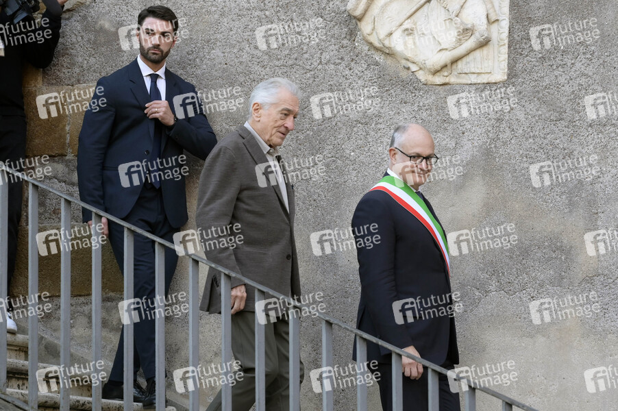 Robert de Niro und Roberto Gualtieri nach der Verleihung des Lupa Capitolina auf dem Kapitolsplatz. Rom, 06.11.2025
