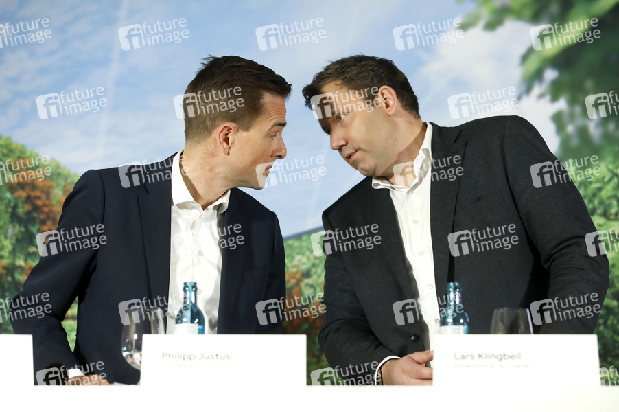 Philipp Justus und Lars Klingbeil bei der Vorstellung des Google Investitionsplans für Deutschland in der Hessischen Landesvertretung in den Ministergärten. Berlin, 11.11.2025