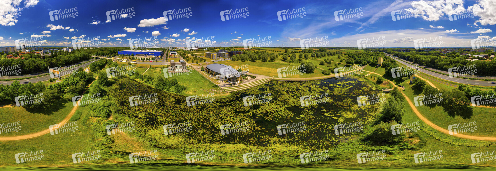 Luftbildaufnahme vom Expo Park Hannover. Laatzen, 09.06.2019