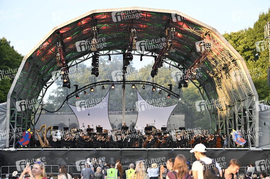 Die Staatsphilharmonie Nürnberg unter der Leitung von David Afkham beim Nürnberger Klassik Open Air 2022 im Luitpoldhain. Nürnberg, 24.07.2022