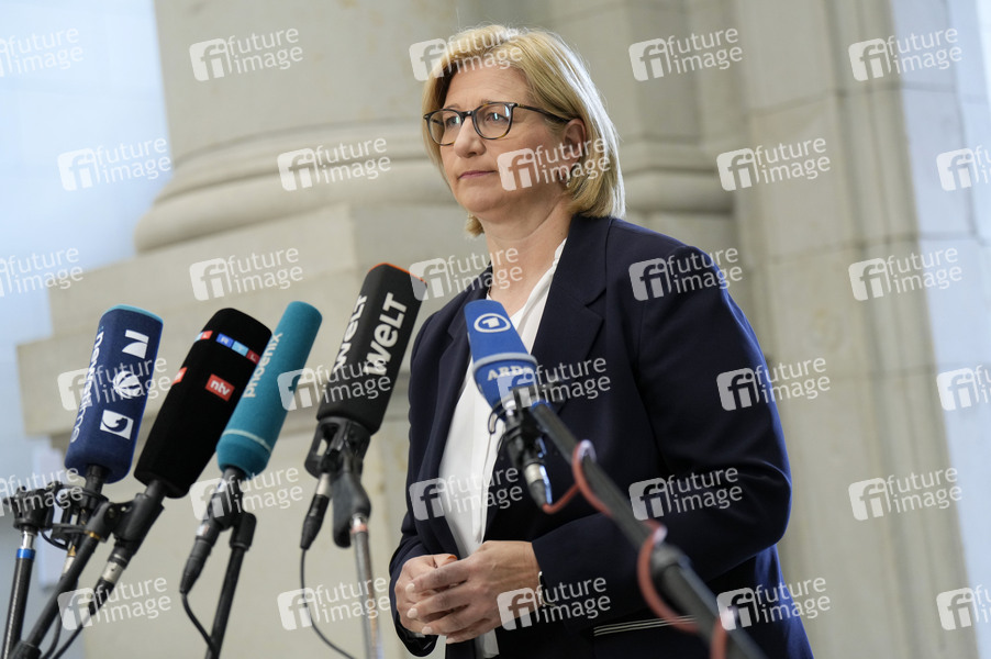 Anke Rehlinger beim Pressestatement am Rande der 1045. Sitzung des Bundesrates im Plenarsaal des Preußischen Herrenhauses. Berlin, 14.06.2024