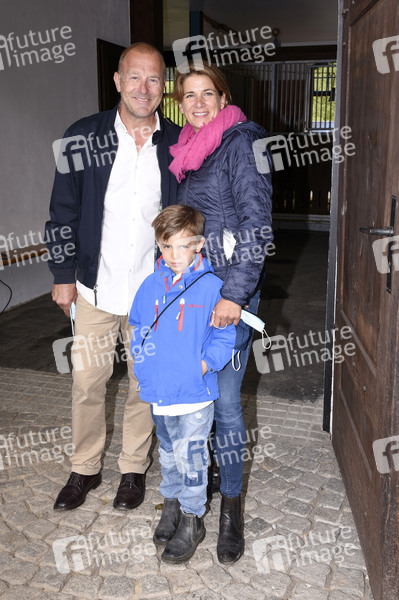 Heino Ferch mit Ehefrau Marie-Jeanette und Sohn Gustav Theo Cian beim Presserundgang auf der Circus Krone-Farm. Weßling, 29.06.2020