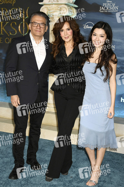 David Barrera, Maria Canals-Barrera und Bridge Barrera bei der Weltpremiere der 2. Staffel der Disney+ Serie 'Percy Jackson and the Olympians / Percy Jackson: Die Serie' im Academy Museum of Motion Pictures. Los Angeles, 03.12.2025