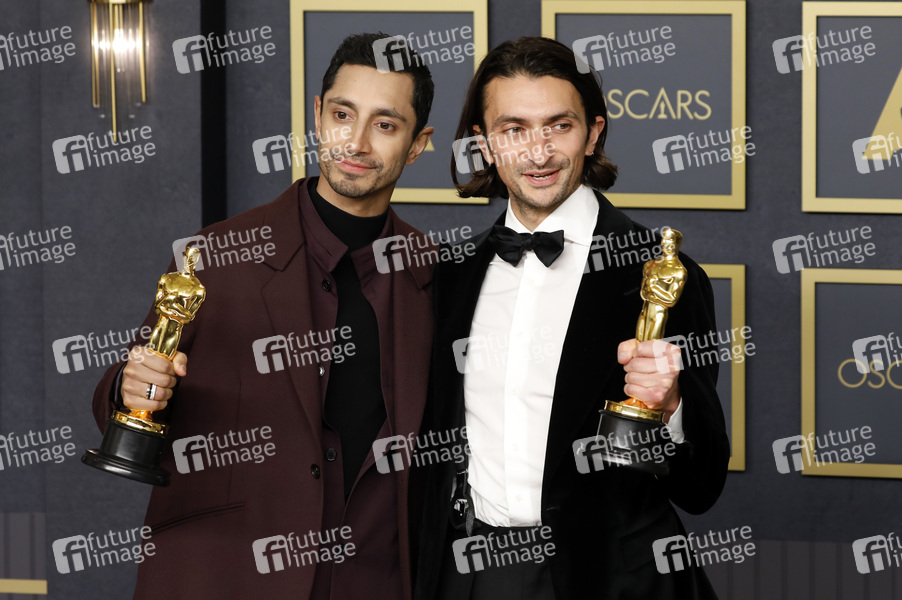 Riz Ahmed und Aneil Karia mit den Oscars für den besten Kurzfilm 'The Long Goodbye' im Press Room der Oscar Verleihung 2022 / 94th Annual Academy Awards im Hollywood & Highland Center. Los Angeles, 27.03.2022