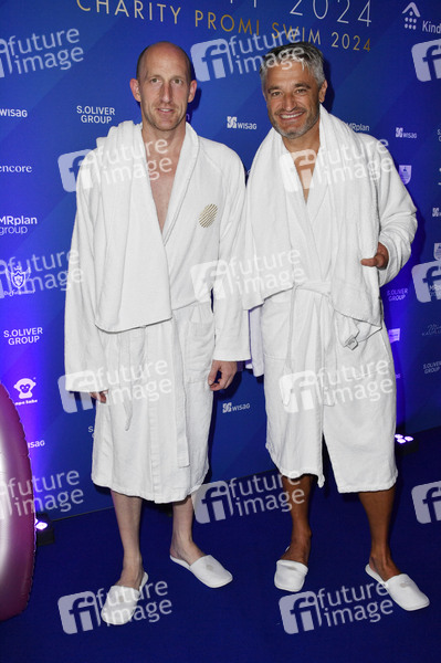 Thomas Lurz und Gerd Schönfelder beim Charity Promi Swim Event 2024 zugunsten von 'Kindeswohl-Berlin' im Hotel Pullman Berlin Schweizerhof. Berlin, 04.09.2024
