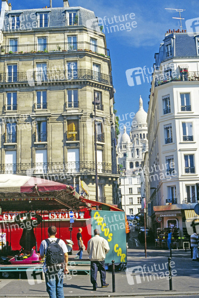 Paris, Frankreich, Reisen, Sacre Ceur, Mont Martre, Strassenszene, Rucksack, Stadt, Hauptstadt, Kirmes, Morgen