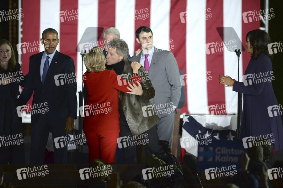 Chelsea Clinton, Barack Obama, Hillary Clinton, Bill Clinton, Jon Bon Jovi, Marc Mezvinsky und Michelle Obama bei einer 'Get out the Vote' Wahlkampfveranstaltung in der Independence Mall . Philadelphia, 07.11.2016