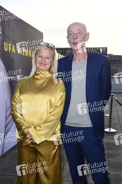 Ute Biernat und Friedrich Küppersbusch beim Eröffnungsempfang der UFA Filmnächte 2025 auf der Dachterrasse der Bertelsmann Repräsentanz. Berlin, 27.08.2025