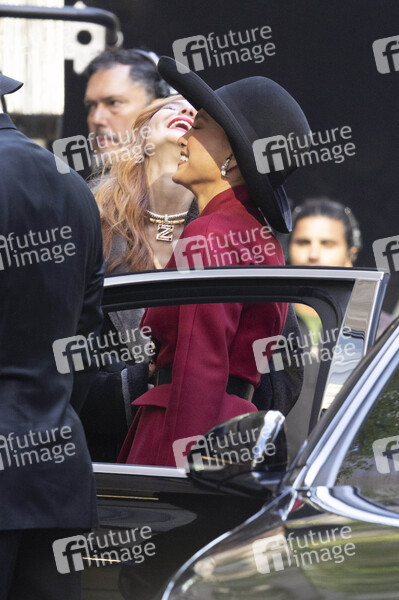 Isabel May und Jennifer Lopez bei den Dreharbeiten zum Kinofilm 'The Last Mrs. Parrish' am Rockefeller Center. New York, 10.10.2025