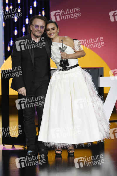 Penelope Cruz mit Bono bei der Verleihung des Donostia Awards für ihr Lebenswerk auf dem 67. Internationalen Filmfestival San Sebastian / Festival Internacional de Cine de San Sebastián im Theater Victoria Eugenia. San Sebastian, 27.09.2019
