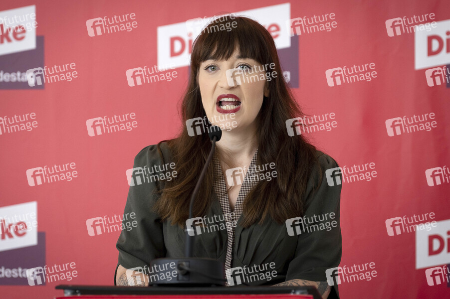 Politik, Statement, Pressekonferenz, PK, Reichstag, Deutscher Bundestag, Demokratie, Parlament, Parlamentsgebäude, Volksvertreter, MdB, Mitglied des Bundestages, Abgeordnete, Politikerin, Vorsitzende der Fraktion Die Linke