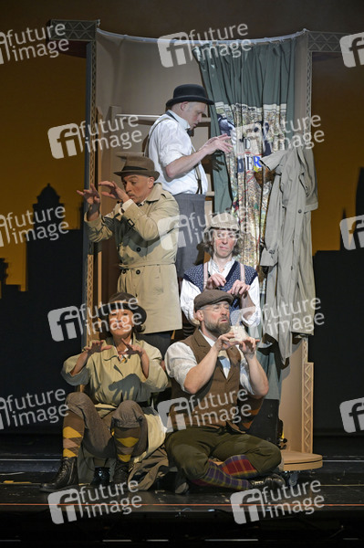 Krista Birkner, Mario Ramos, Henrik Kairies, Oliver Seidel und Bürger Lars Dietrich bei der Fotoprobe zum Theaterstück 'Erich und die Detektive' im Schlosspark Theater. Berlin, 21.01.2026