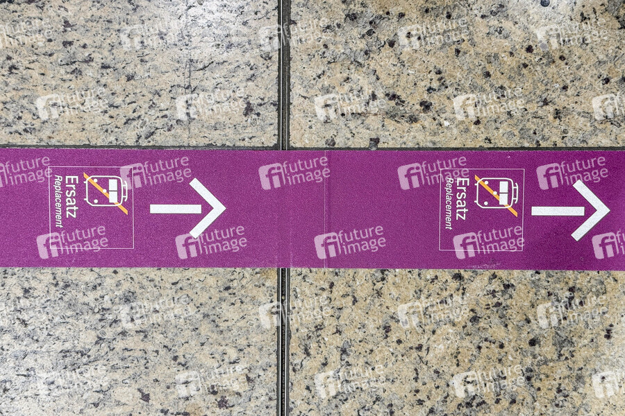Im Rahmen von Streckenmodernisierungen oder Störungen des Eisenbahnbetriebes, richtet die Bahn einen Schienen-Ersatzverkehr mit Bussen ein. Hierdurch verlängert sich die Reisezeit oft erheblich zum Beispiel durch Verkehrsstaus auf den Straßen. Die Bushaltestellen zum Schienen-Ersatzverkehr werden in den Bahnhöfen durch auffällige Hinweisbanner und Schilder hingewiesen. (Symbolfoto, Themenfoto) Köln, 17.05.2025