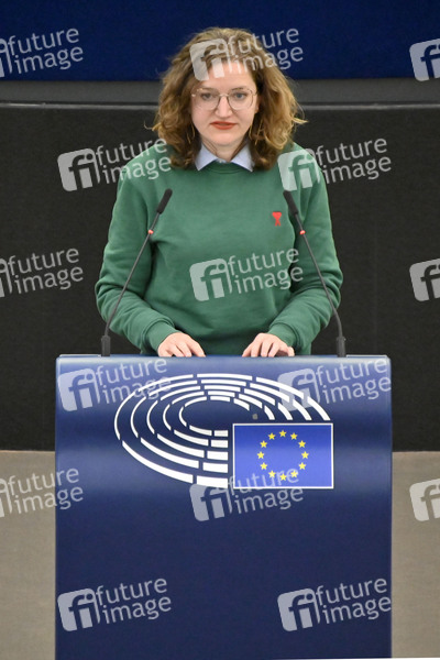 Marie Toussaint bei einer Plenartagung zum sechsten Bewertungsbericht des Weltklimarats der Vereinten Nationen zum Klimawandel im Plenarsaal des Europäischen Parlaments. Straßburg, 04.04.2022