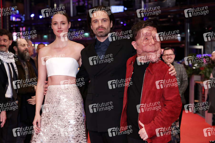 Renate Reinsve, Sebastian Stan und Adam Pearson bei der Premiere des Kinofilms 'A Different Man' auf der Berlinale 2024 / 74. Internationale Filmfestspiele Berlin im Berlinale Palast. Berlin, 16.02.2024