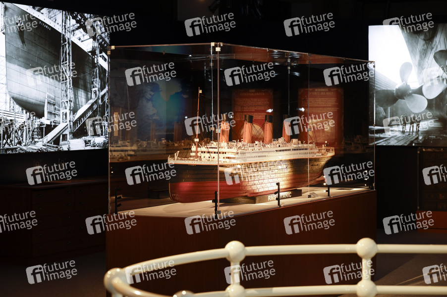 Modell der Titanic bei der Eröffnung der Ausstellung 'Titanic: Eine immersive Reise' im ehemaligen Autohaus Oskar-Jäger-Str. 99. Köln, 06.02.2025
