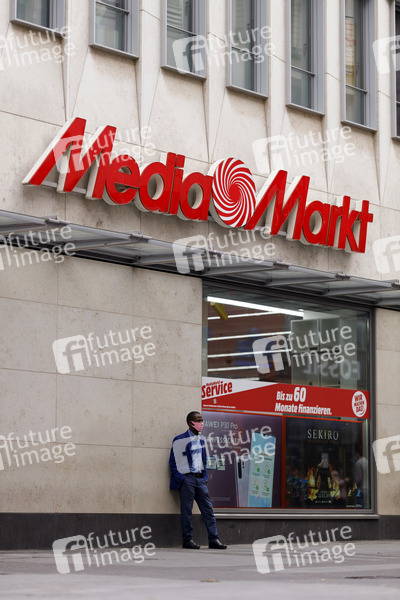 Eine Filiale von MediaMarkt mit Passanten mit Mundschutz wegen der Coronakrise in der Hohe Straße. Köln, 20.05.2020